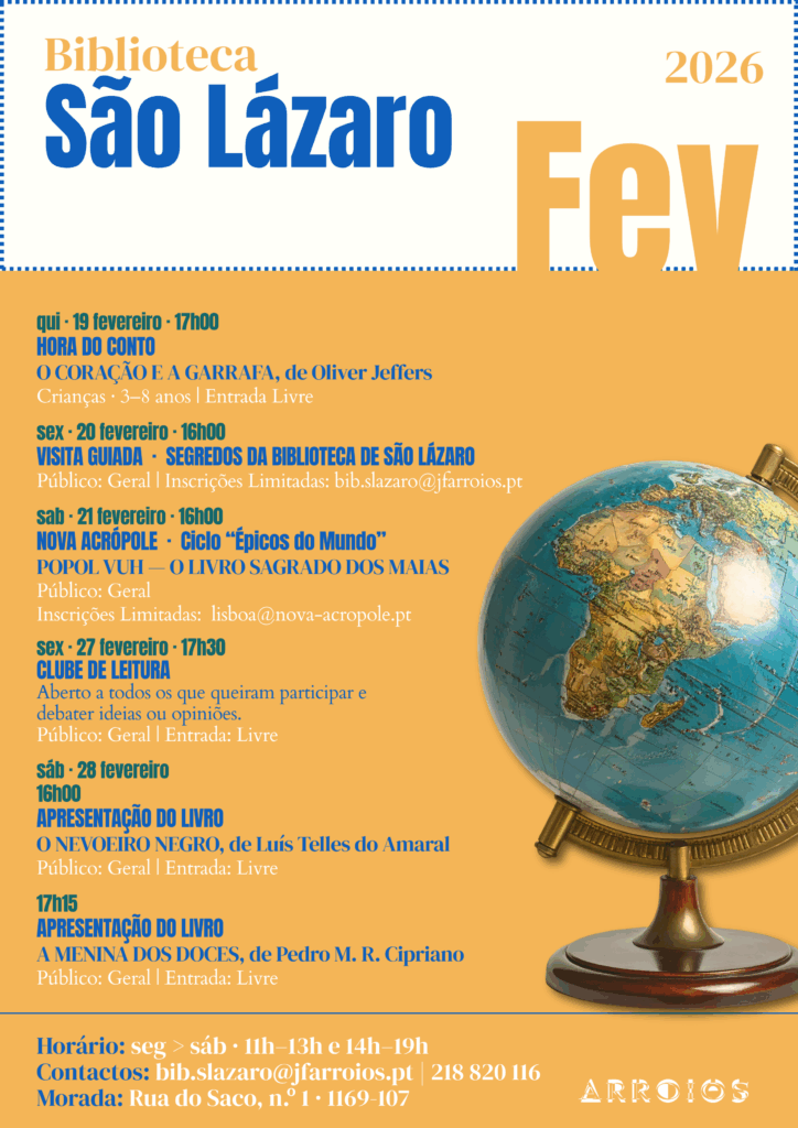 (*) na última quarta-feira de cada mês a Biblioteca de São Lázaro encontra-se aberta ao publico das 14h às 19h.