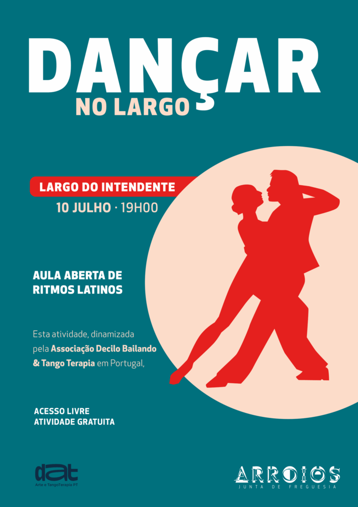 No dia 10 de julho, a partir das 19h00, junte-se a nós no Largo do Intendente para uma aula aberta de ritmos latinos, dinamizada pela Associação Decilo Bailando & Tango Terapia.