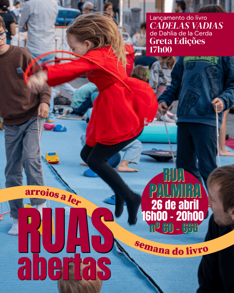 Integrada nas celebrações do 25 de Abril e na programação de Arroios a Ler – Semana do Livro, esta edição contará com uma feira do livro ao ar livre, com a participação de livrarias da freguesia. Às 17h00, terá lugar o lançamento do livro Cadelas Vadias, da Greta Edições, com a presença da autora mexicana Dahlia de la Cerda.