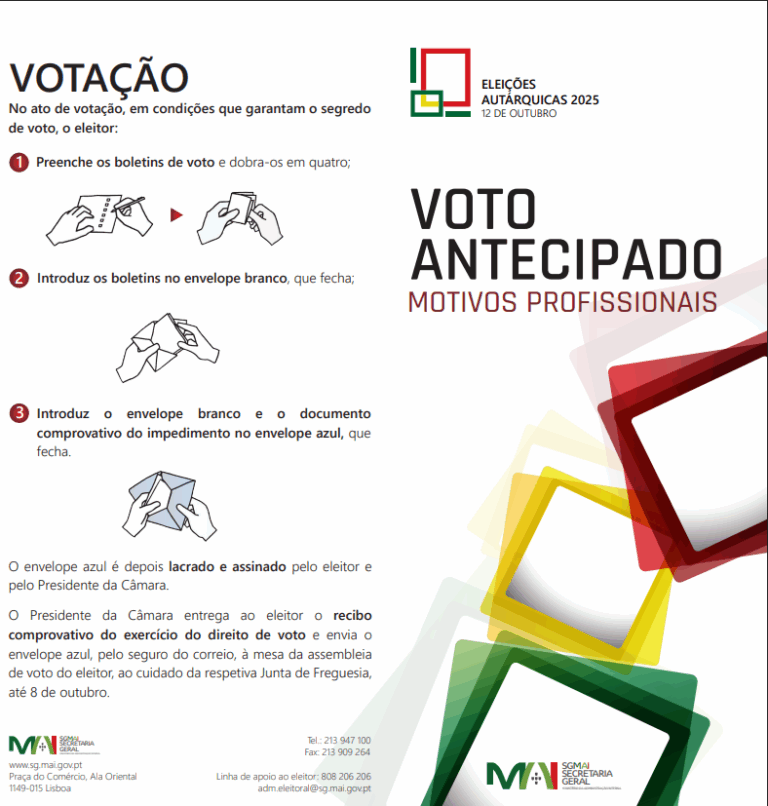 Consulte a informação oficial sobre Voto Antecipado por motivos profissionais.