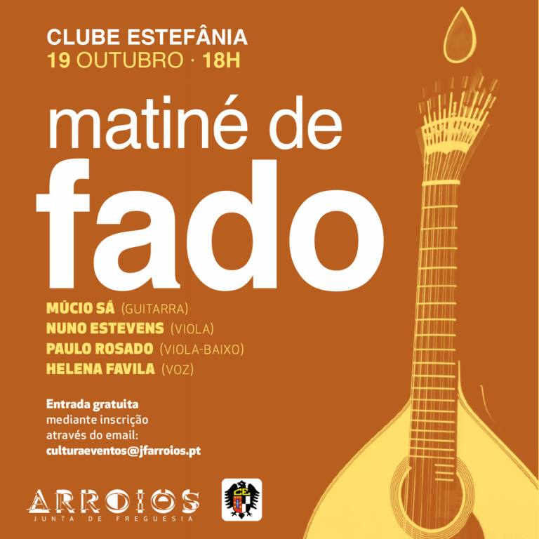 Data: 19 de outubro, às 18h00 A Junta de Freguesia de Arroios convida toda a comunidade a participar numa tarde dedicada ao fado, no próximo