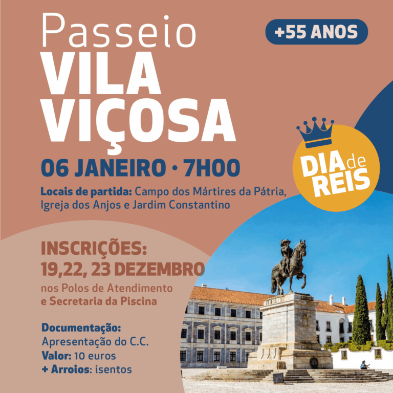 A Junta de Freguesia de Arroios promove, no próximo dia 6 de janeiro, um Passeio a Vila Viçosa, destinado a participantes com 55 ou mais