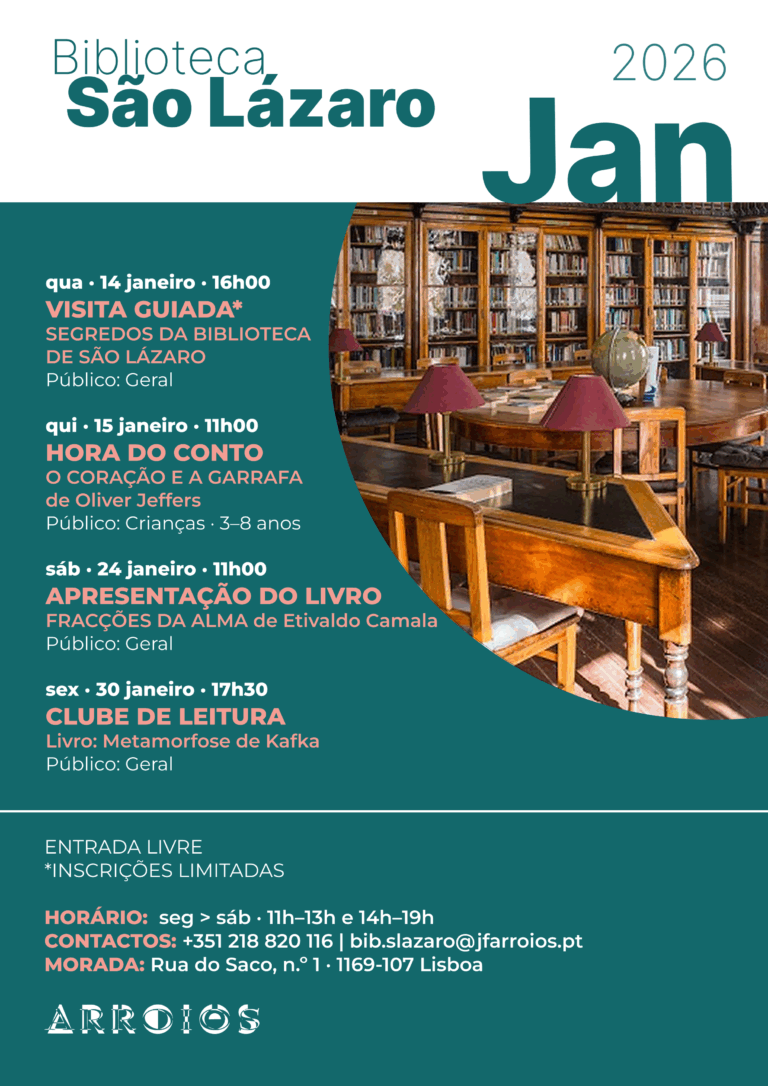 Em janeiro, a Biblioteca de São Lázaro apresenta uma programação pensada para diferentes idades e interesses, convidando a descobrir a leitura como espaço de encontro,