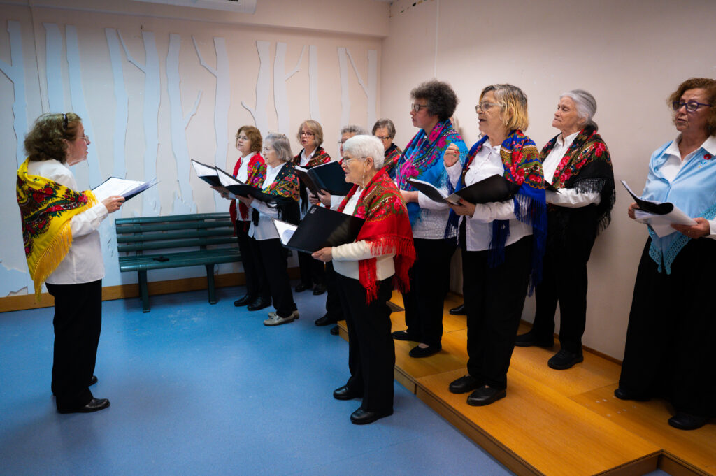 O Grupo de Cantares integra o canto coral, uma das mais de vinte disciplinas da Academia Sénior de Arroios: um projeto que afirma o direito à aprendizagem ao longo da vida e à participação ativa na comunidade. Aqui, cantar não é apenas interpretar canções: é estar em relação, ouvir e ser ouvido, ocupar o espaço comum com voz própria.