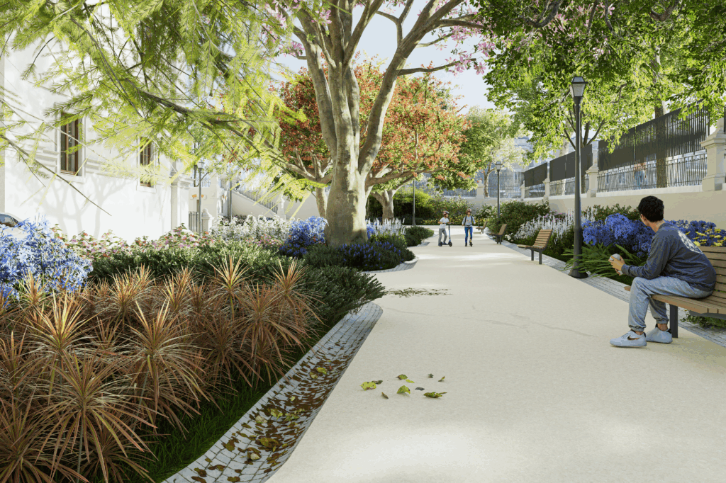Junto à Igreja dos Anjos, com o Jardim revitalizado por completo: novos canteiros, melhor iluminação, piso, rega e sanitários renovados. E, de novo, com fecho noturno para maior segurança.
