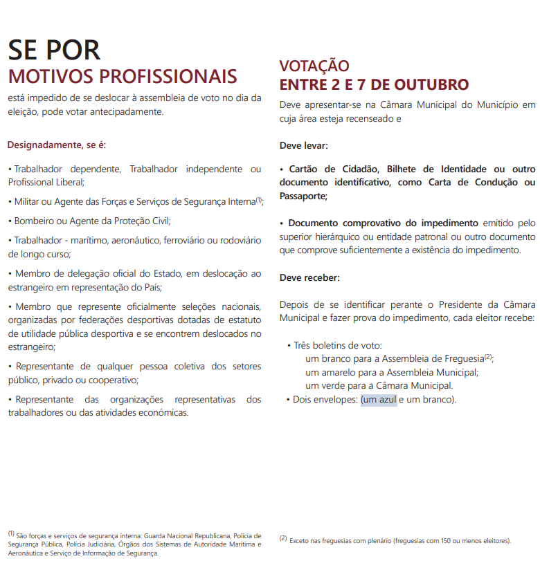 Consulte a informação oficial sobre Voto Antecipado por motivos profissionais.