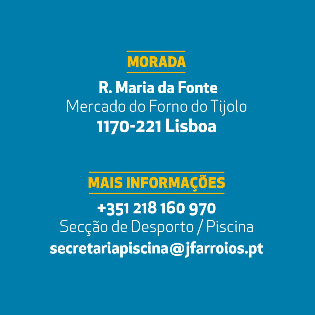 • Presencialmente, na Secretaria da Piscina de Arroios